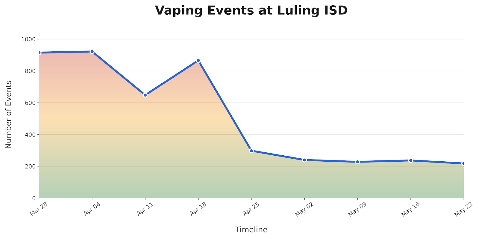 The data tells a compelling story. In late March, when monitoring began, Luling ISD recorded over 900 vaping events district-wide. Within just two weeks, that number had dropped to approximately 650 events—a decline that accelerated as students realized their behavior was no longer invisible.