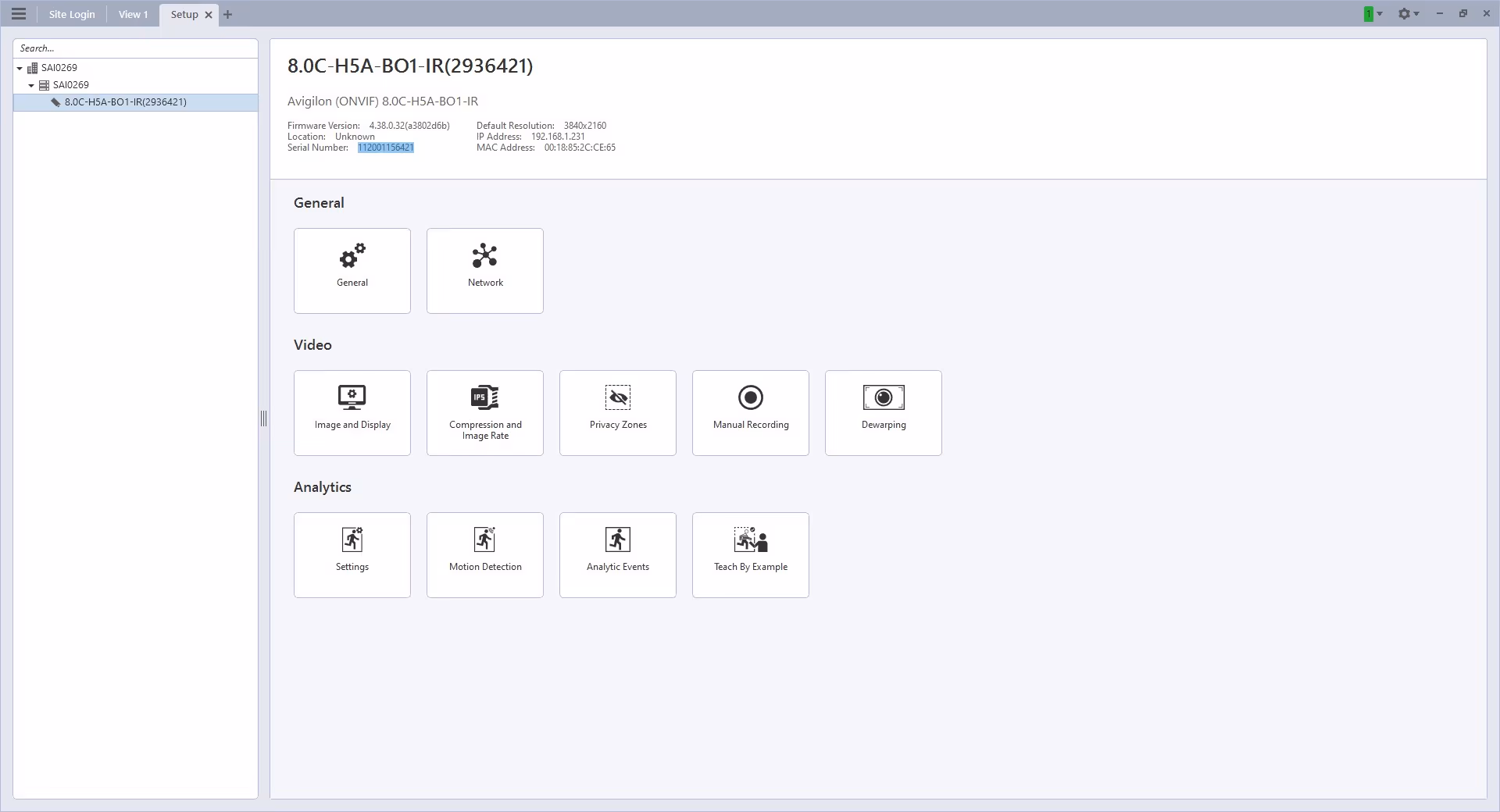 Step 2: Next, log into your Avigilon Unity Software. Go to the main menu, and select Site Setup under Manage.
