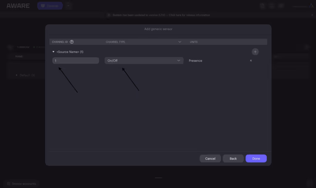 Step 3: For each 3D Sense Device, click “+”, click “Generic”, enter a name for your sensor (preferably the Device ID on the side of each device), select “Default” for device group, and set disconnect timeout to 9999